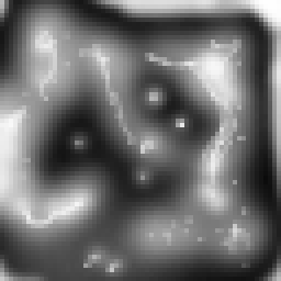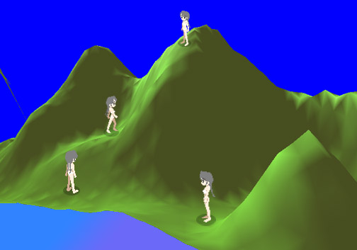 マップは、8ビットグレースケールのBMPファイル(下図)から自動生成というものにしてみたが、微妙に法線の設定に失敗……○| ̄|_