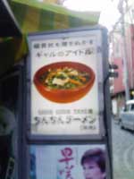 写真は、噂に名高きメニュー「楊貴妃も腰抜かすギャルのアイドル ちんちんラーメン」の看板です。