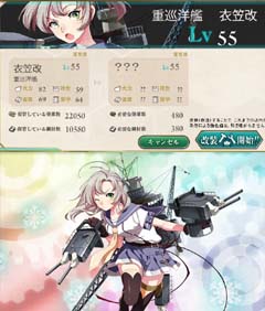 衣笠さんにおまかせして良いのかどうかは分からんけども、改ニになるというなら、育ててやるさっ!と、重巡洋艦「衣笠」を改ニにしましたよと。