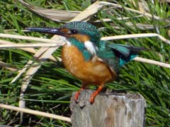 しばらく歩いていると、川の向こう側にいる老人とその息子さんがいて、老人が「この間、カワセミを見たんだよ」と言っていたのが聞こえたので見てみると、老人は気づいていないようでしたが、足元の川岸に丁度カワセミがいました。