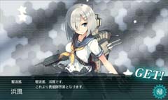 「艦これ」、駆逐艦「浜風」をバシー島沖にて取得。
